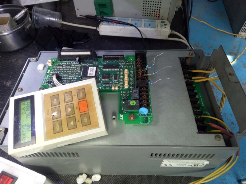 一臺洗水機變頻器,在高脫水時報警過載。帶載試機,電流正常也能工作。懷疑電流電路故障,做靜態測試和動態測試,檢測點電流平衡,進一步檢測到主板,w相電流檢測電路有10khz的干擾,換放大器芯片,故障依舊,加濾波電容,只是幅度變小,干擾依舊,測試中注意到一個細節,cpu i/o引腳到運放有反饋震蕩產生,更換鉗位二極管,故障排除