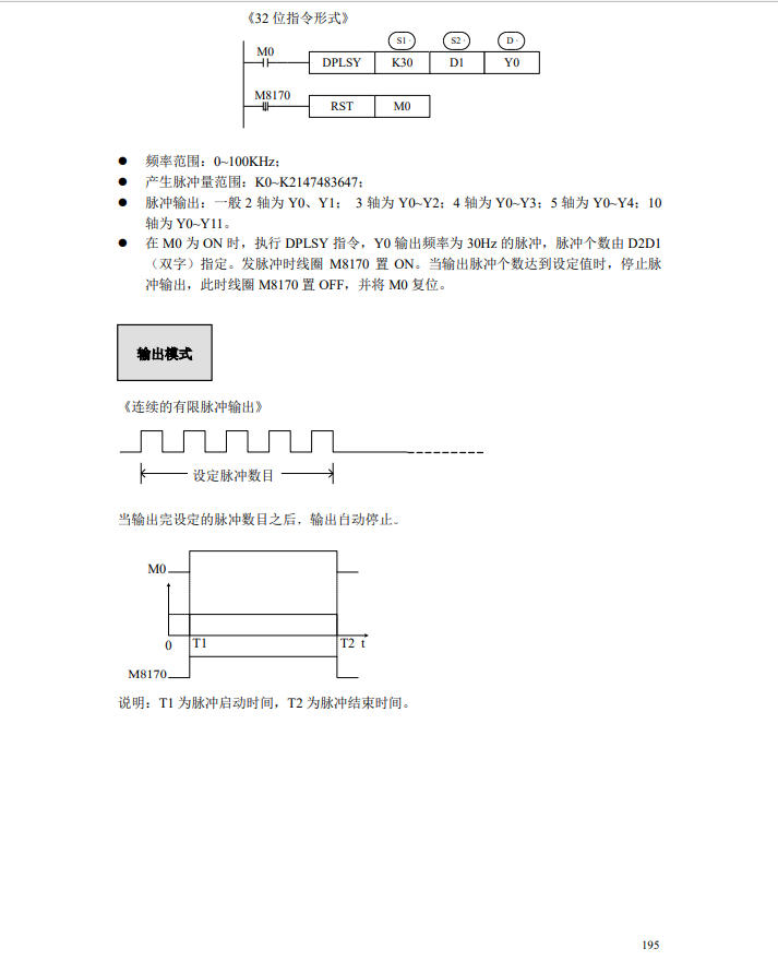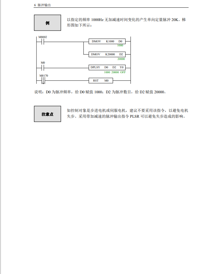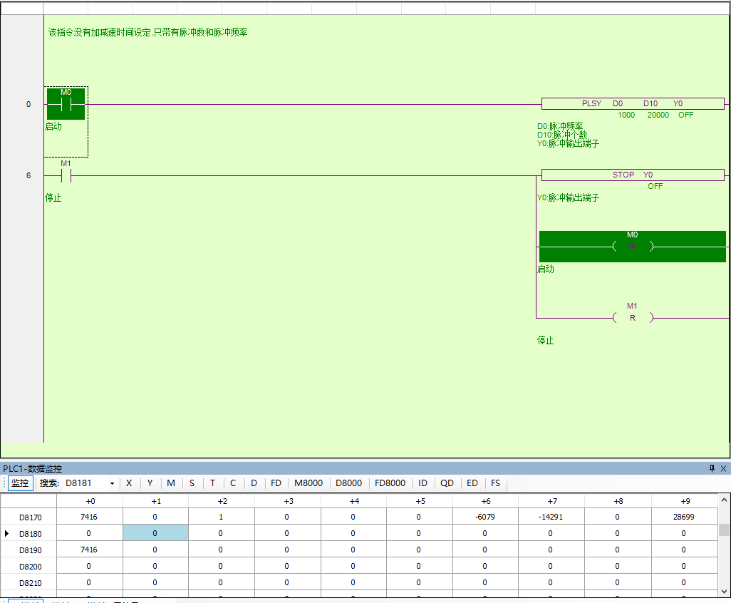 雙字D8170 存儲累計輸出的脈沖輸 雙子D8190存儲當前指令輸出的脈沖數