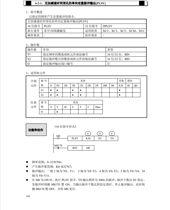 指令格式 PLSY [S1 S2 BIT ] 16位脈沖輸出指令