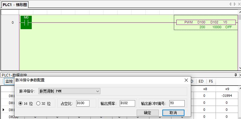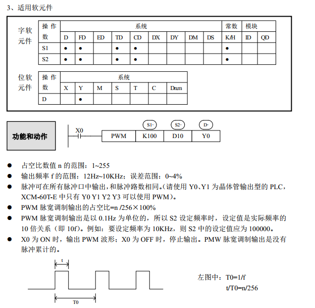 指令格式 PWM [ S1 ,S2 ,D] 16位指令格式