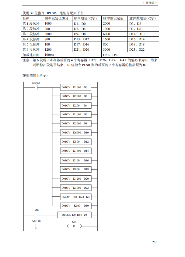 雙字D8170 存儲累計輸出的脈沖輸 雙子D8190存儲當前指令輸出的脈沖數