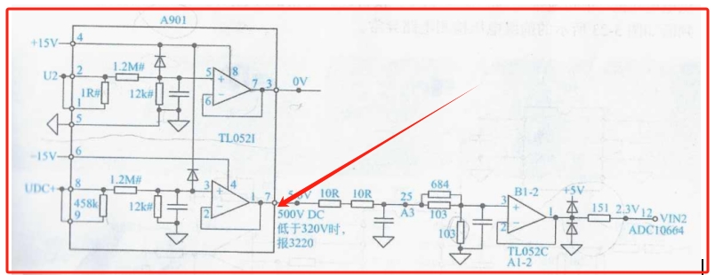偶爾報警,牽扯原因比較多,先檢查直流母線電壓檢測電路 如圖所示 國外機型 電壓比較器放在一個陶瓷基板上 器件的散熱條件變好 但無法確定是否降低了故障率 代換A901小板上的器件 需要高熱的電烙鐵 如150W高頻感應 加熱焊臺