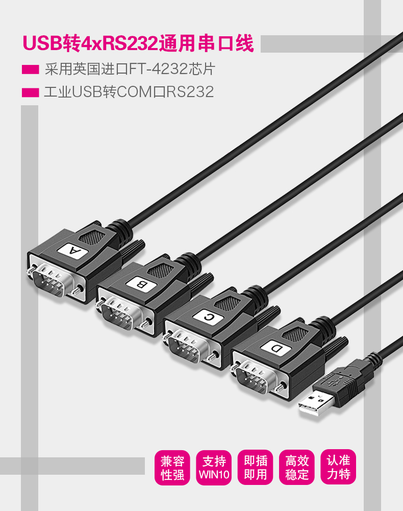 USB轉多串口數據線 USB轉RS232串口線一拖四4口9針公COM多串口轉接線 Z-TEK力特