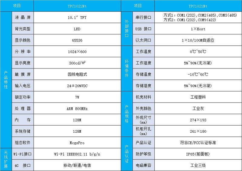 TPC1021Nt,是以ARM CPU為核心、主頻800MHz的智能物聯(lián)網(wǎng)觸摸屏,該產(chǎn)品設(shè)計采用10.1英寸TFT液晶顯示屏,分辨率1024*600,四線電阻式觸摸屏,同時還預(yù)裝了McgsPro組態(tài)軟件(運行版)還預(yù)裝了McgsPro組態(tài)軟件(運行版)