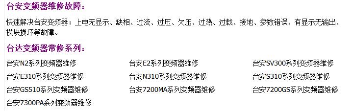 專業維修臺安變頻器變頻器,承接全國臺安變頻器維修業務和煙臺及周邊地區的安裝調試業務。我們將用精湛的技術、優質的服務為您排憂解難!