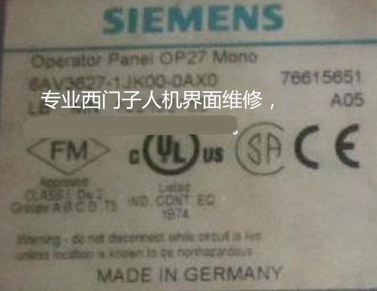 西門子人機界面維修范圍包括:按鍵損壞、電源板故障、高壓板故障、液晶故障、主板壞,上電黑屏、 花屏、藍屏、白屏,上電無反應、上電燒保險,不能正常開機、進入不了系統、觸摸問題、按鍵問題、內容錯亂,觸摸無反應、觸摸反應慢、 觸摸死機、觸摸偏差,無背光、背光暗、PWR燈不亮、通訊失敗等故障。
